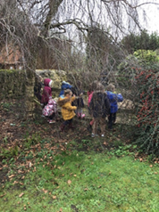 exploring, digging, bike-riding, climbing and play. It is also close to the Reception class at Waltham Primary School so they get to see older children who become friends. - a large field for running, parachute games, sports and play.