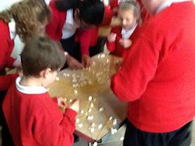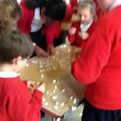 Making marshmallow towers.