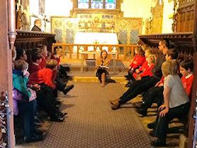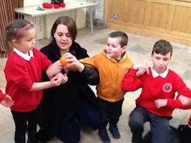 The children are explaining the elements of a Christingle.