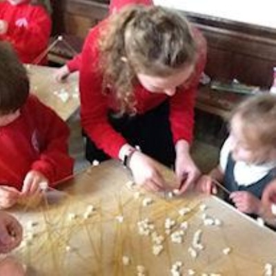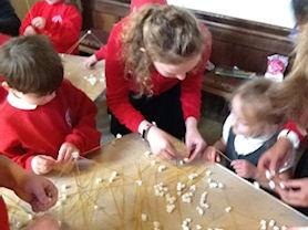 After that, the children were organised into teams and we played some fun, creative Christingle tasks. For the first task, the children had to pass a polo along a piece of ribbon without anyone seeing. For the second task, we listened to a Christingle story and all wrote our own Christingle prayers. For the third task, we had to work as a team to build a tower using pasta and marshmallows. Mr Alexander finished the ceremony off with a blessing.