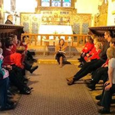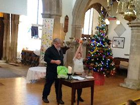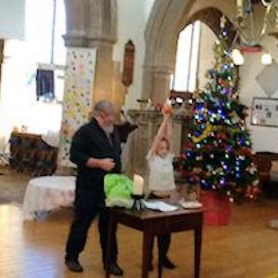 Creating a giant Christingle in the church.