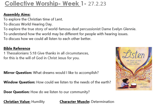 Collective worship involves all members of our school sharing time together in quiet moments of reflection to celebrate life and to show reverence to God. Everyone takes an active part in worship time; although parents do have a right to withdraw their child from participation should they choose to do so.