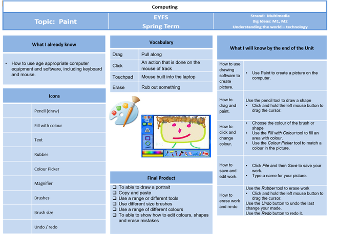 Statement of IntentAt our school, we recognise that Computing is an essential part of the curriculum; a subject that not only stands alone but is woven as an integral part of all learning. Computing, in general, is an increasingly significant part of daily life, and children should be at the forefront of new technology At the core of our computing curriculum is computer science, in which pupils are taught the principles of information and computing, how digital systems work, and how to put this knowledge to use. Building on this knowledge and understanding, we intend for our children to become digitally literate – able to use technology, express themselves and develop their ideas. In addition to this, with the ever-increasing social media platforms used by children, we will prioritise coaching our children (and parents) to remain safe and respectful online. Through a thorough and robust Computing curriculum, children will be able to develop a wide range of fundamental skills, knowledge and understanding that will enable them to participate actively, effectively and safely in the rapidly changing digital world. Statement of Implementation