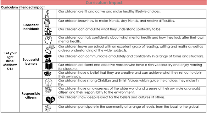 Our curriculum is deeply embedded in our school vision and Christian Values – they are the roots of our curriculum. Values are beliefs or principles that guide the way we think and behave. Our Christian Values are: friendship, respect, perseverance, love and compassion. These are interwoven with the fundamental British values of democracy, rule of law, individual liberty, mutual respect for and tolerance of those with different faiths and beliefs and for those without faith.