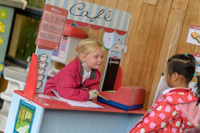 we build dens with large-scale construction materials; or use the mud kitchen, sand trays and ramps to learn about the world around us. We have a little stage area which we love to perform on and sometimes we turn it into special environments, like a Waltham Café or builders site.