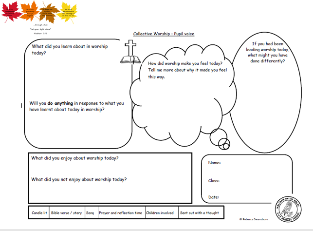 - Collective worship, springing from the Christian vision, is valued, biblical and affirming. It is developed and enriched by strong opportunities for pupil leadership. Collective worship influences the lives of both pupils and staff, enabling them to flourish.