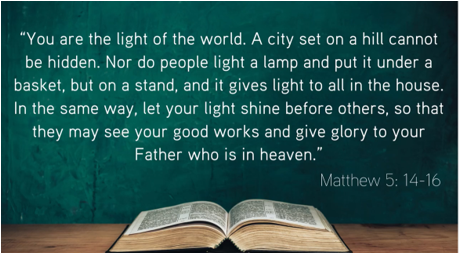 Our vision is rooted in the teachings of Jesus. In the sermon He gave to His followers, as described in Matthew 5:16, He said:
