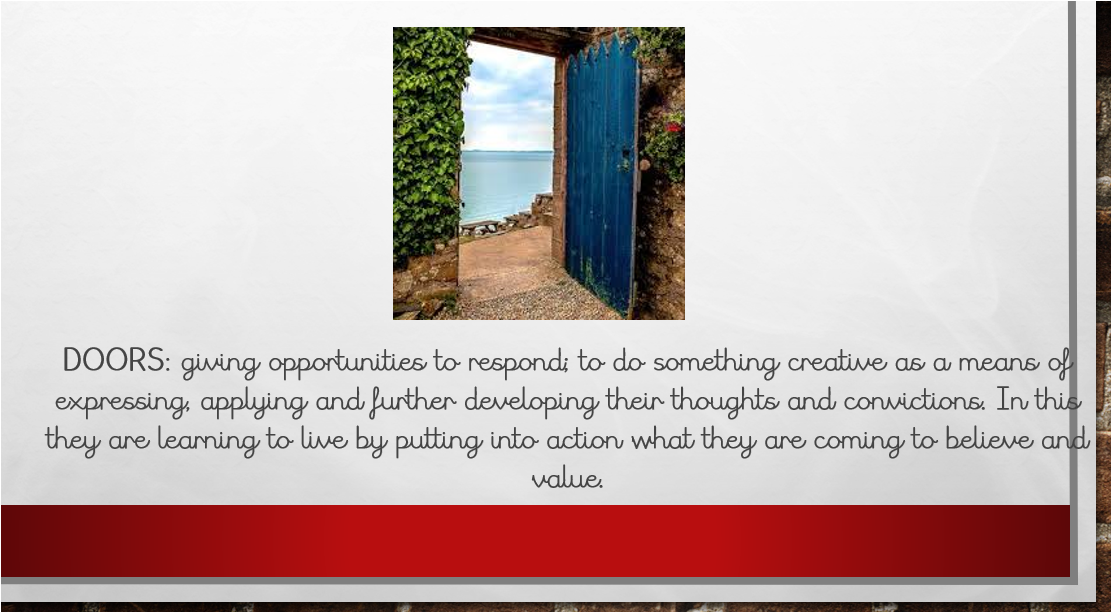 We provide a range of planned and unplanned opportunities for children to develop their own spiritual journey. These opportunities are across the whole curriculum in order to educate the whole child. Activities teach the children to reflect and consider their own actions through the following symbols: