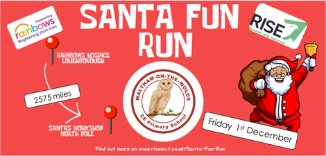 Published 03/11/23Rainbows Santa Fun Run – Loughborough to Santa’s workshop We will be joining forces with the other schools in our Rise MAT family by taking part in the famous Rainbows Santa Run as we aim to complete the distance from Rainbows Lo - Read More