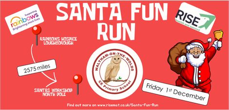 We will be joining forces with the other schools in our Rise MAT family by taking part in the famous Rainbows Santa Run as we aim to complete the distance from Rainbows Loughborough Children’s Hospice to Santa’s workshop in the North Pole to raise money for this wonderful charity.