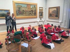 We visited the art gallery, situated within the castle, where the children completed a range of fun activities, such as adding more details to paintings, discussing how characters felt in the paintings and creating their own pieces of art based on a painting. After that, the children had the opportunity to see the original painting of ‘The Banquet’. Here, the children discussed what they had learnt about the painting and then created their own version of it.