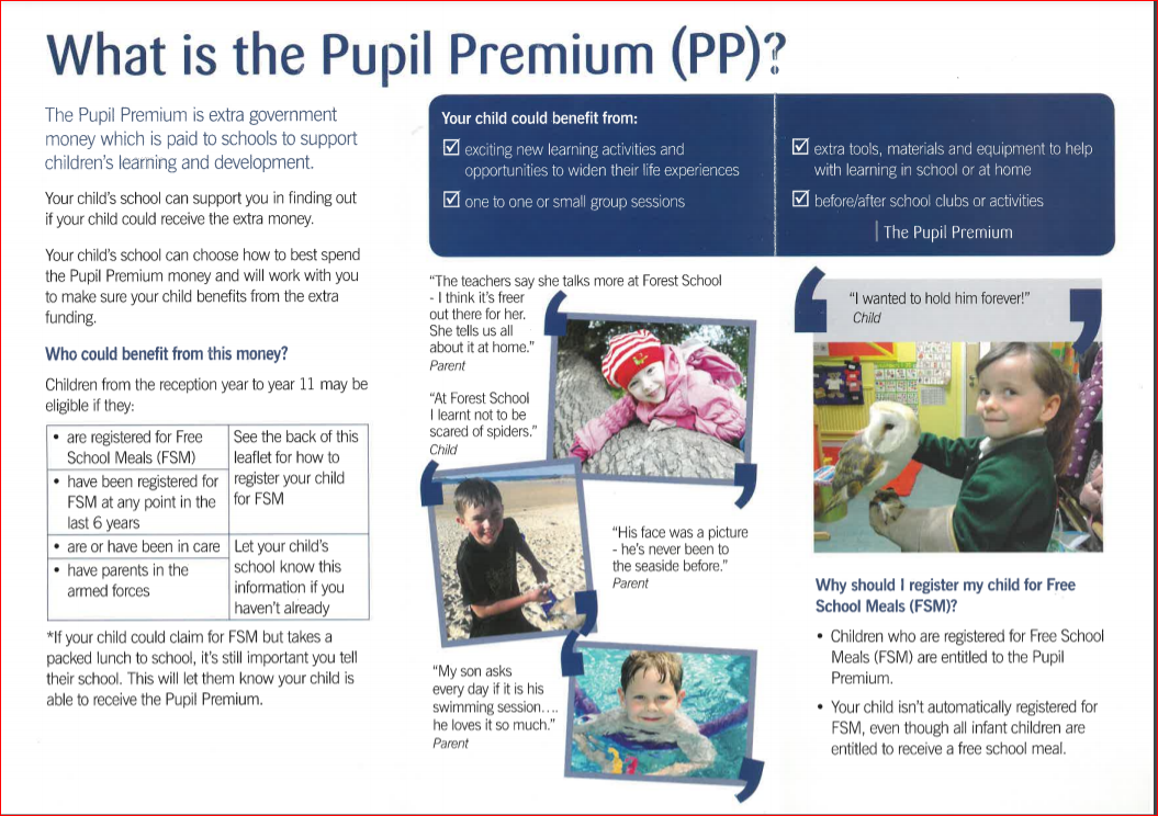 Pupil Premium funds are allocated by the central government for pupils who have ever received Free School Meals in the last six years (FSM Ever6) or who are 'Looked After Children' (children in care or adopted). A premium has also been introduced for children whose parents are currently serving in the armed forces.